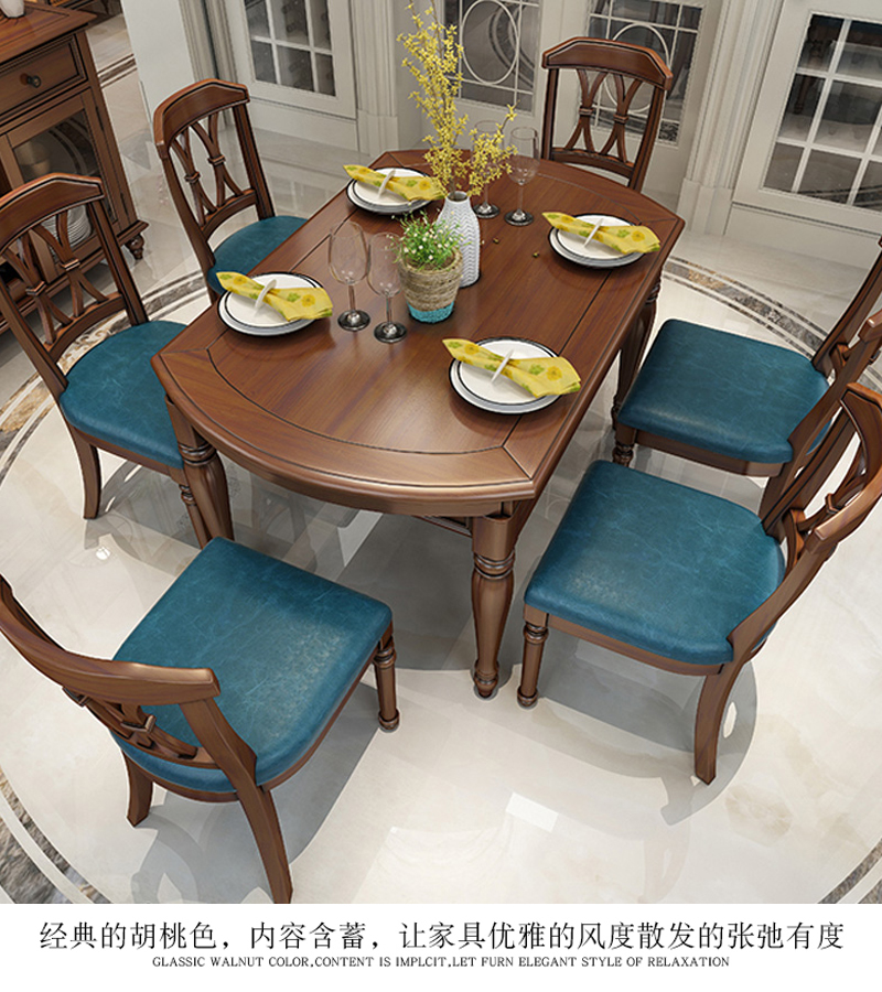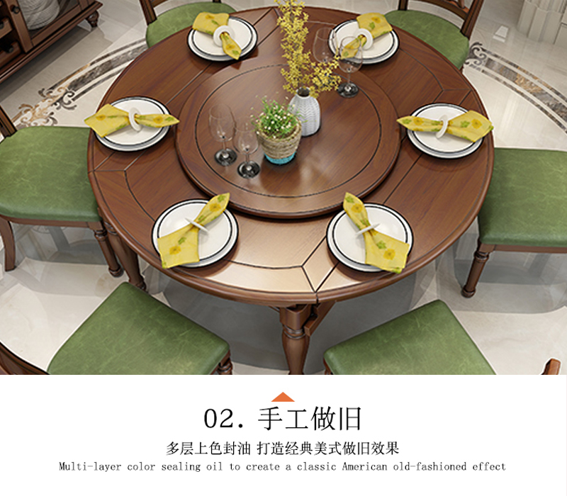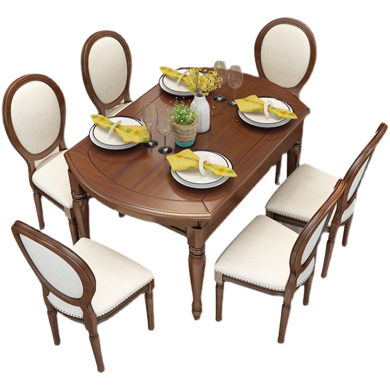 American country solid wood telescopic dining table Folding dining table and chair combination Round platform dining table radius dual-use with turntable