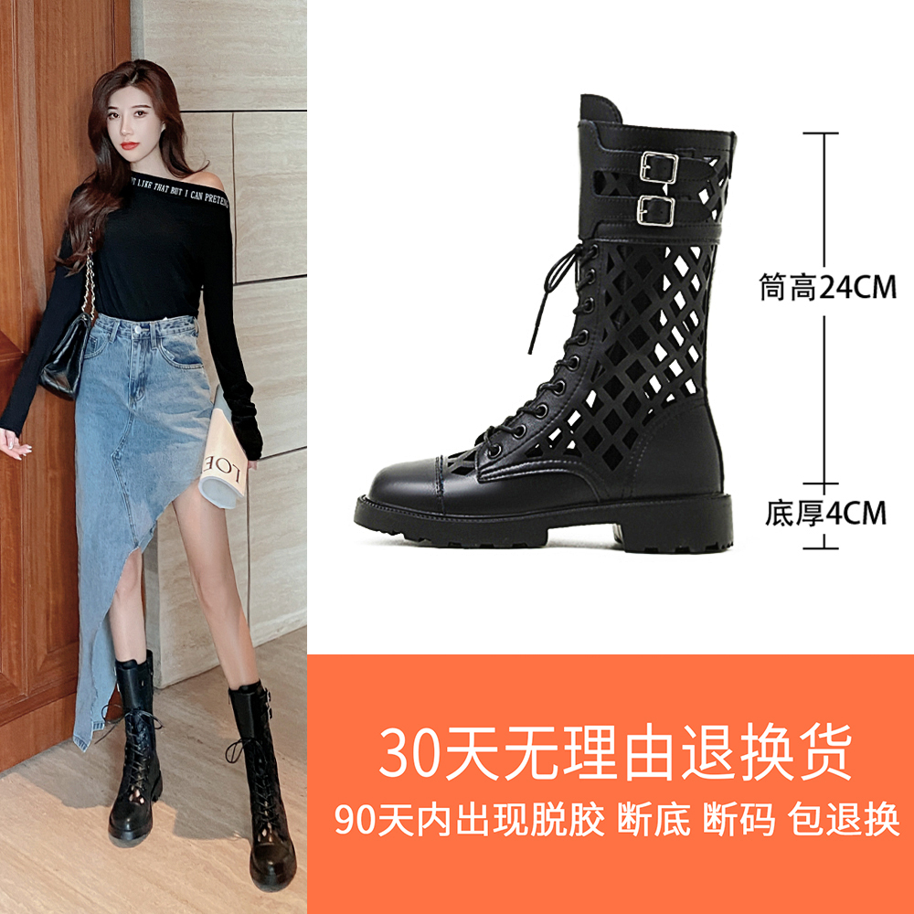 Hollow Martin Boots 2022 Spring New Breakthrough Black British Wind and Middle Cartridge Summer Boots