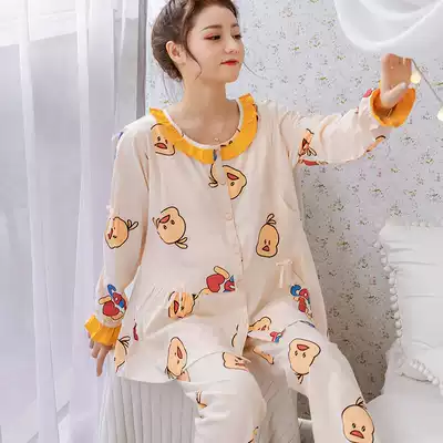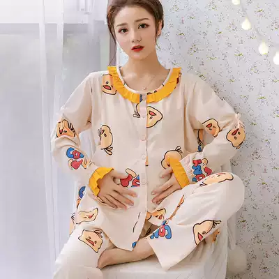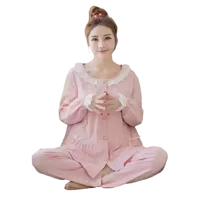 Moon clothes cotton sweat-sucking pregnant women's pajamas summer thin fat MM large size 200 jin postpartum breastfeeding lactation clothes spring and autumn