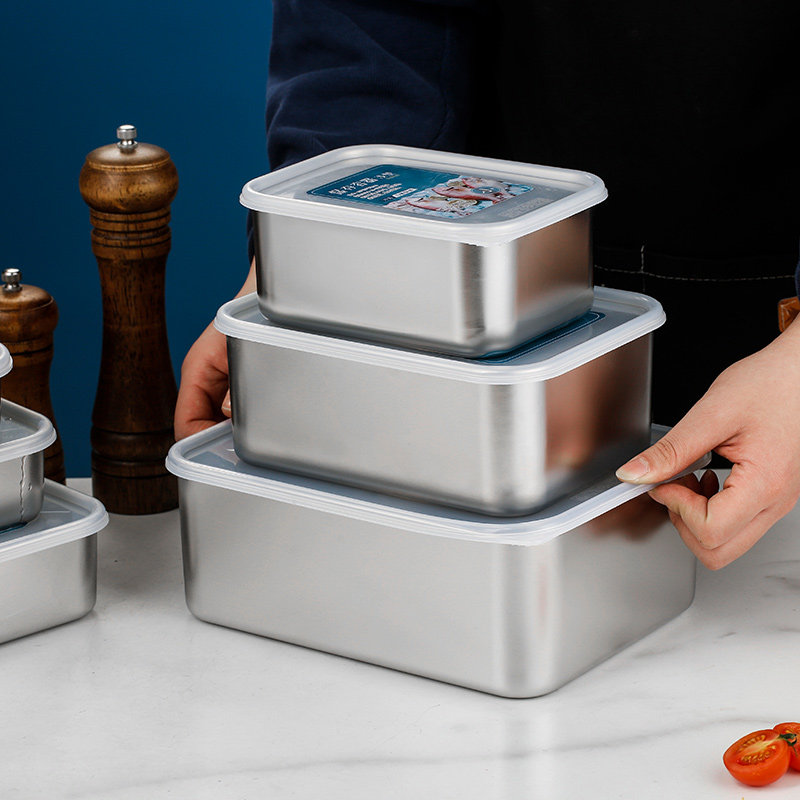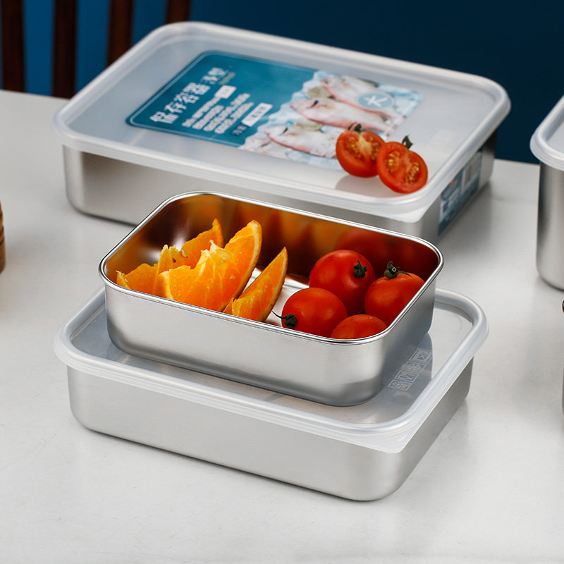 Japanese-style frozen 18-8 stainless steel crisper refrigerator storage quick-thaw box lunch box imitation aluminum lunch box with lid