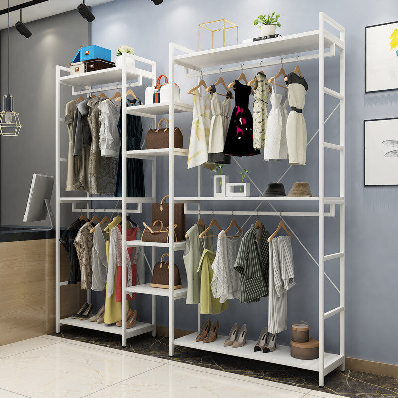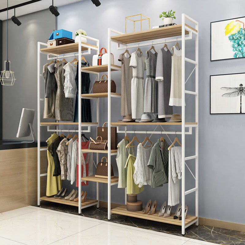 Clothing store display stand Floor-to-ceiling double-layer hangers Men's and women's clothing store shelves Display cabinets Wrought iron hanging clothes racks