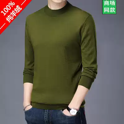 Ordos city pure cashmere sweater men's half-height round neck long-sleeved T-shirt thin woolen sweater bottoming shirt men's trend
