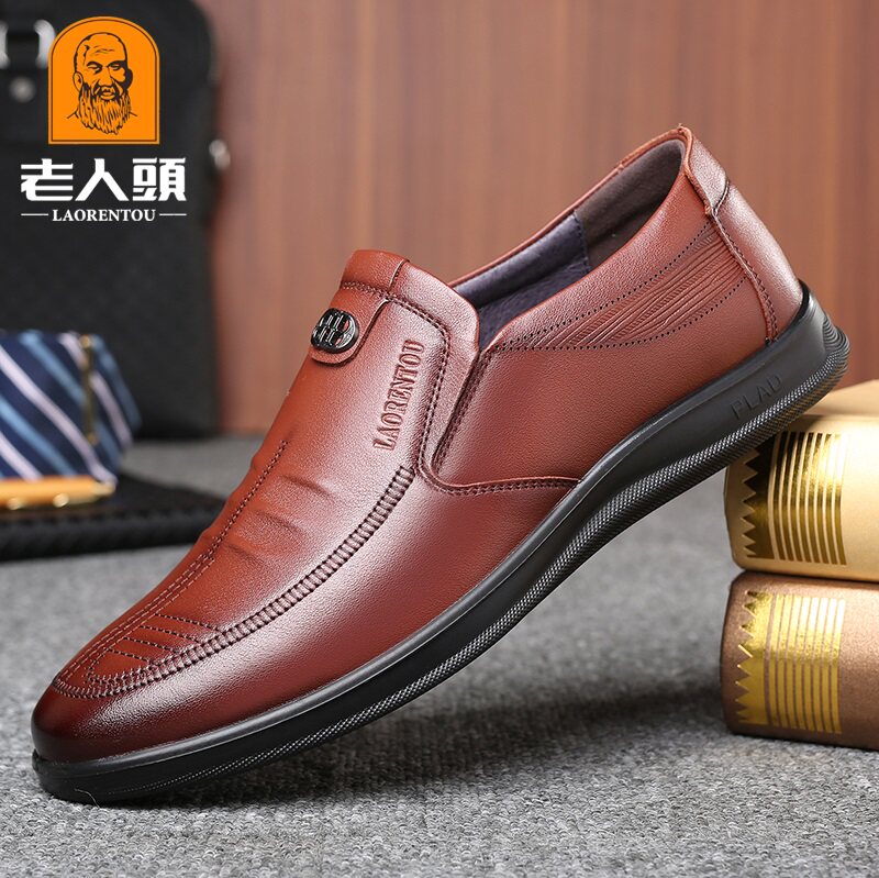 Old man's scalp shoes men's leather brand autumn business casual soft bottom soft leather middle-aged men's shoes dad