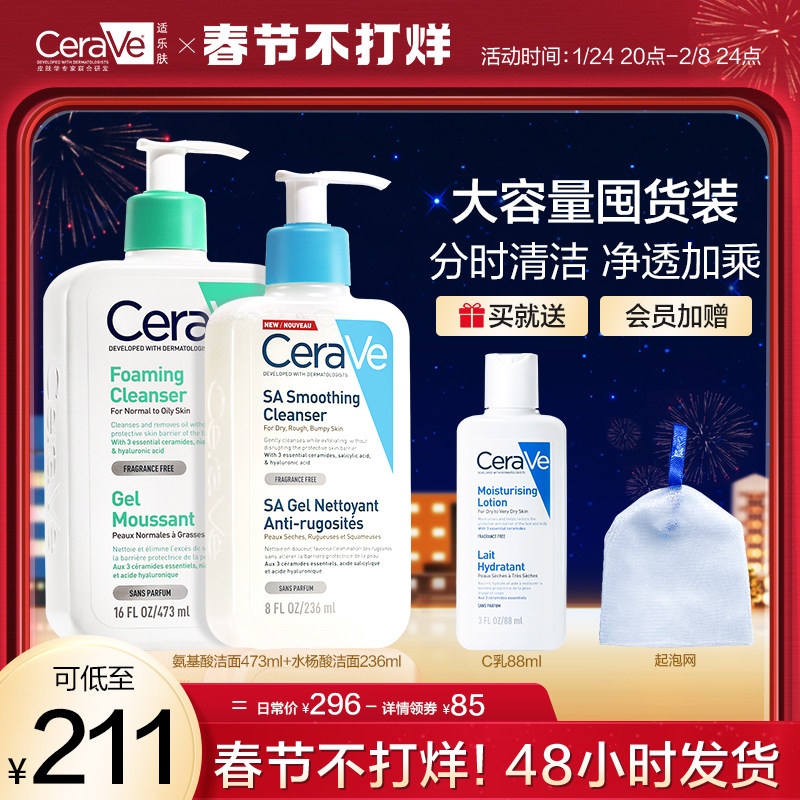 (Time-limited Crazy Grab) CeraVe Shilefu Cleansing Noodle Suit Salicylic Acid Dredging Pore Amino Acid Mild Cleansing
