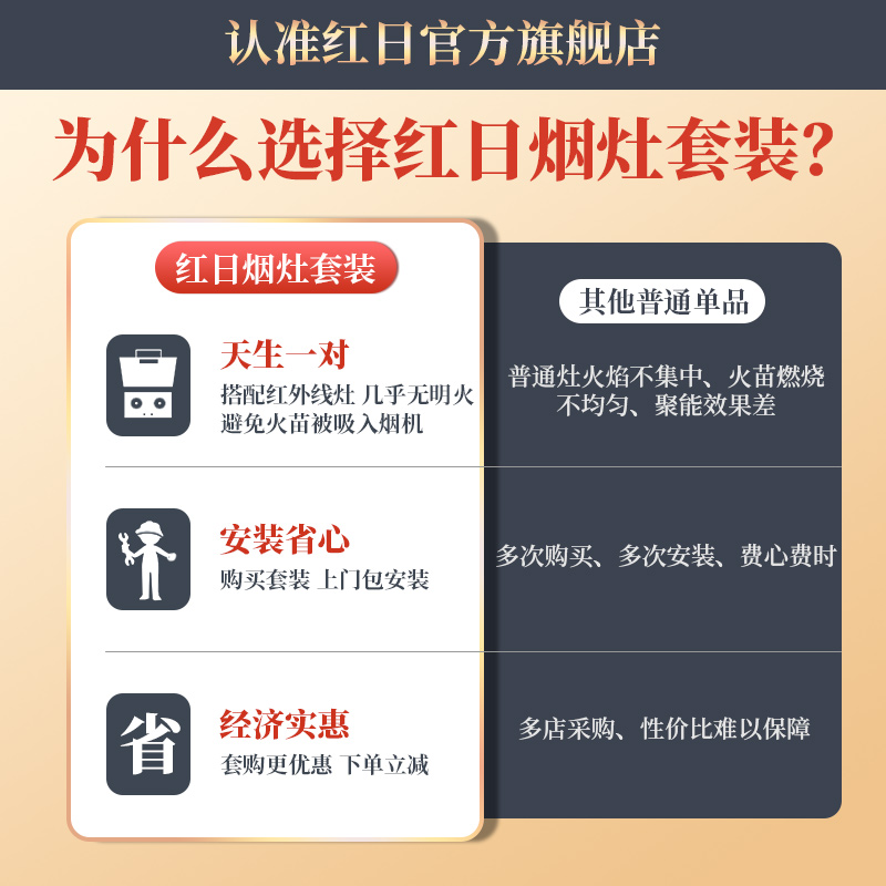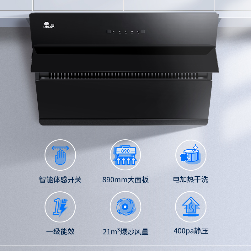 Red Sun JED13H+ES218B Range Hood Gas Stove Household Gas Cooker Kitchen Smoke Stove Combination Set
