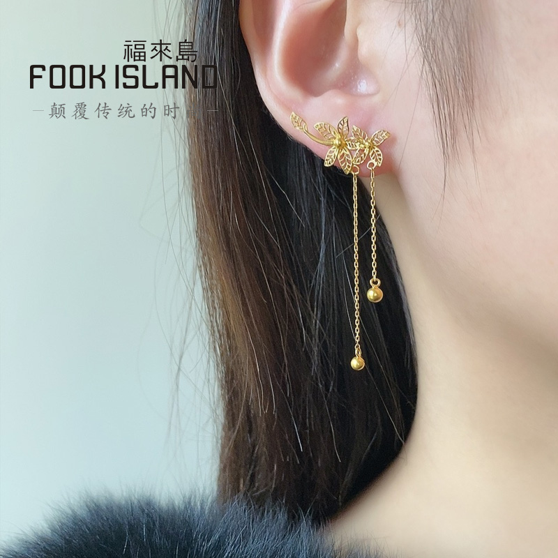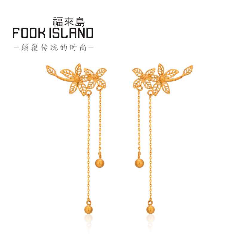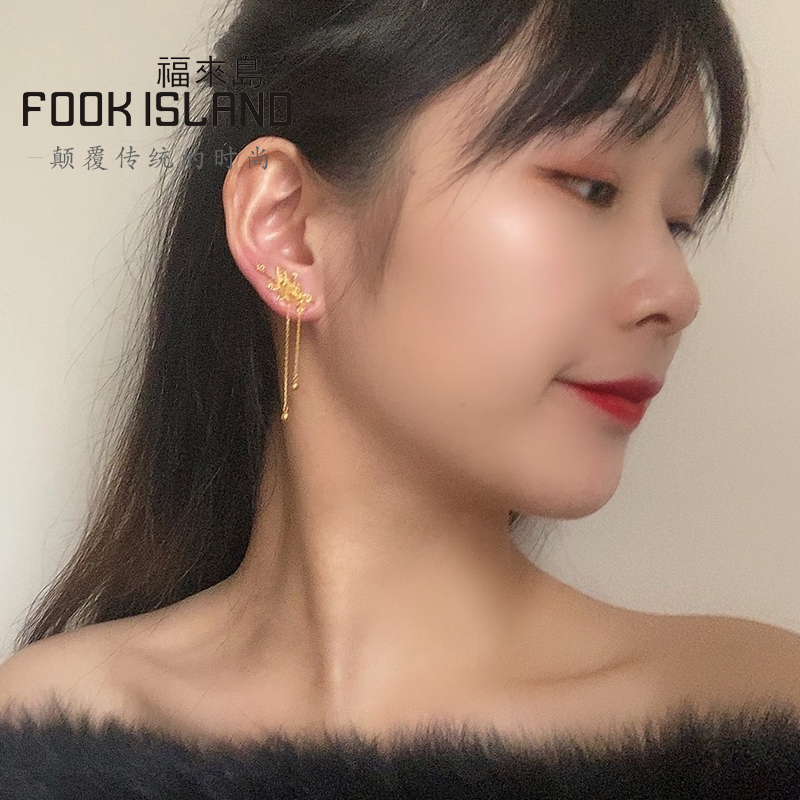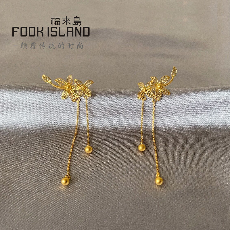 Fulai Island Gold Stud Earrings 999 Pure Gold Earrings Leaves Tassel Water Drops Pure Gold Earrings Ancient Gold Earrings Ladies