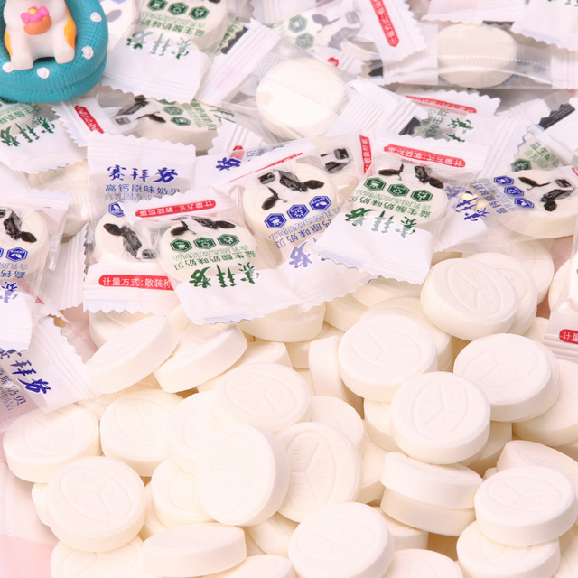 High calcium milk tablets dry eating milk tablets probiotic milk shell snacks milk tablets sugar plug outside Yiyuan Inner Mongolia milk tablets