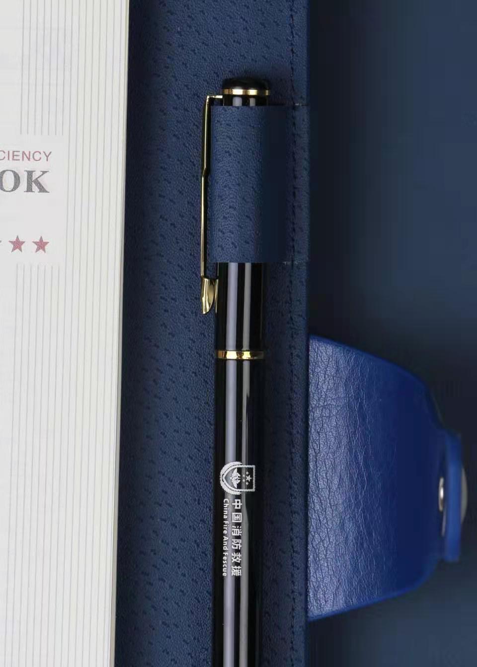 Meeting Minutes Notebook Full Cowhide Customized Fire Fighting Signature Pen With Unified Storage Box