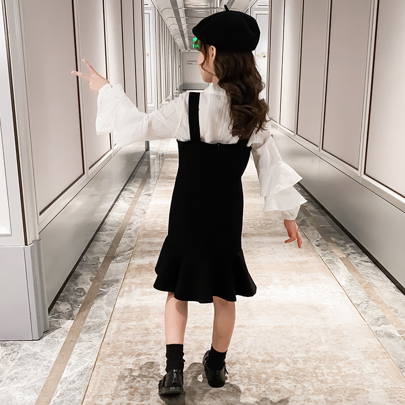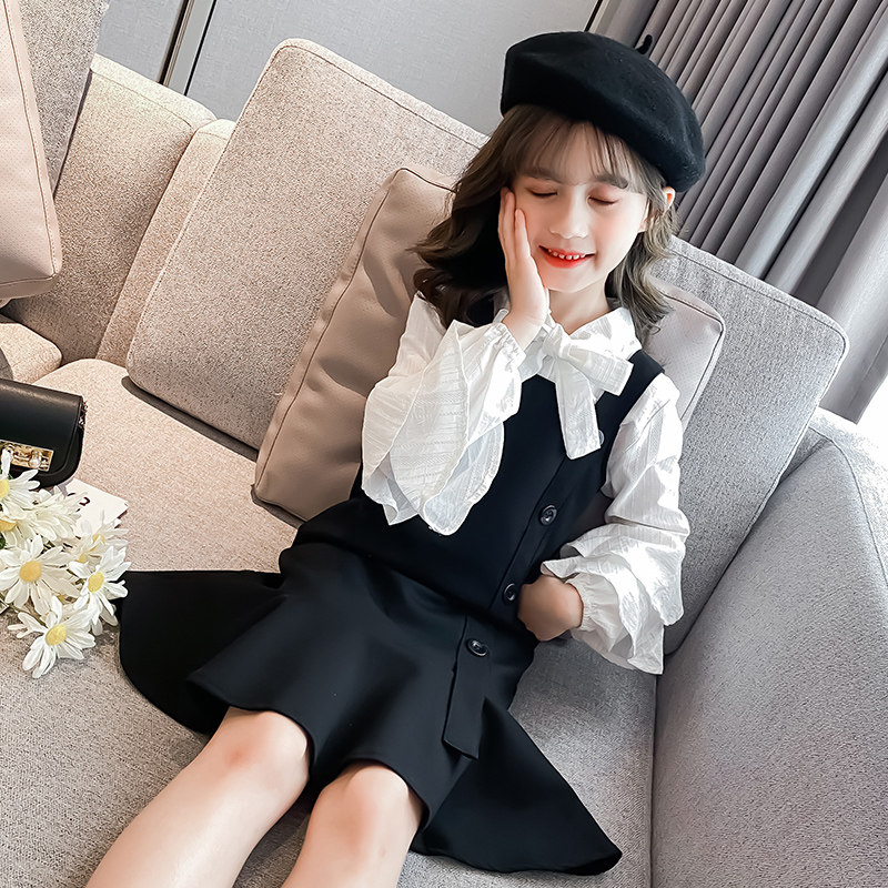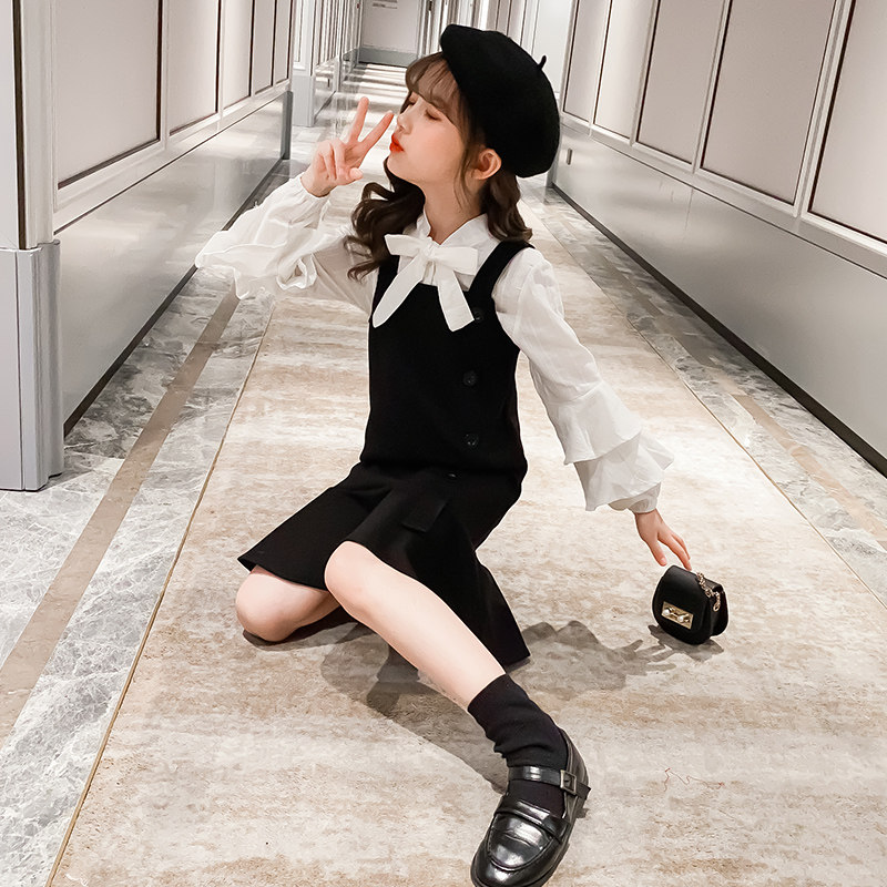 Next inss girls' suit Korean version 2023 spring and autumn new college style suspenders skirt children's children's clothing two-piece set