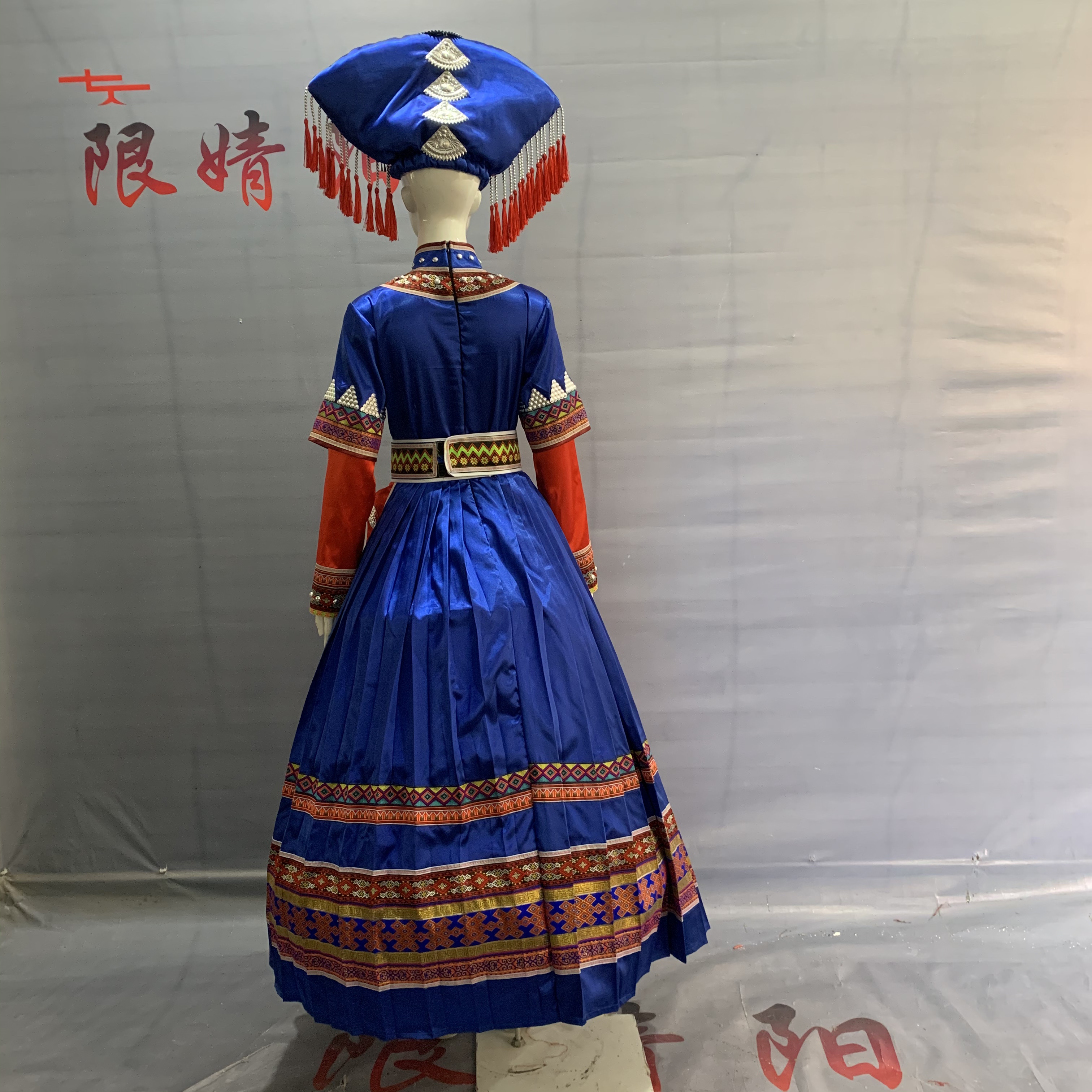 The Zhuang nationality's new ethnic clothing 2021 women's blue long clothing Taoli Cup 56 ethnic clothing custom-made