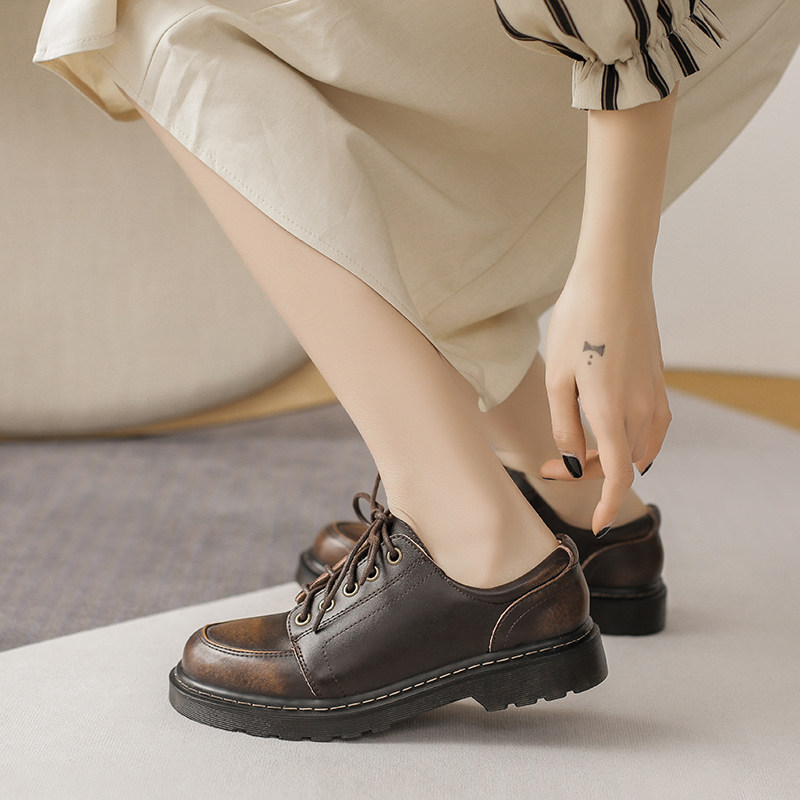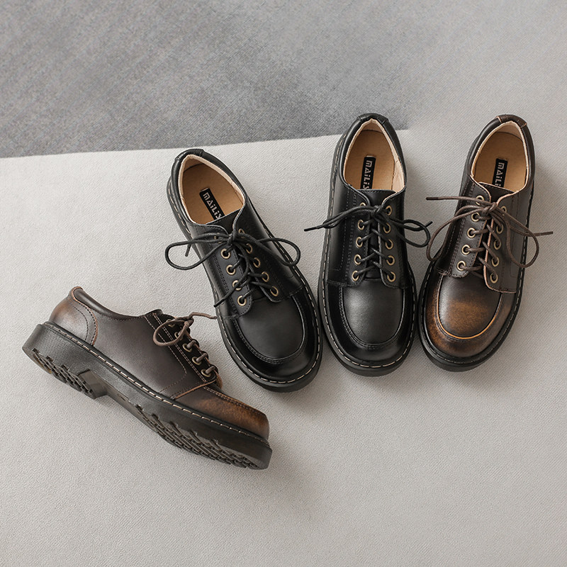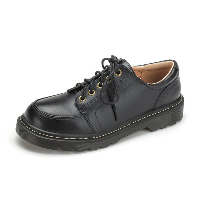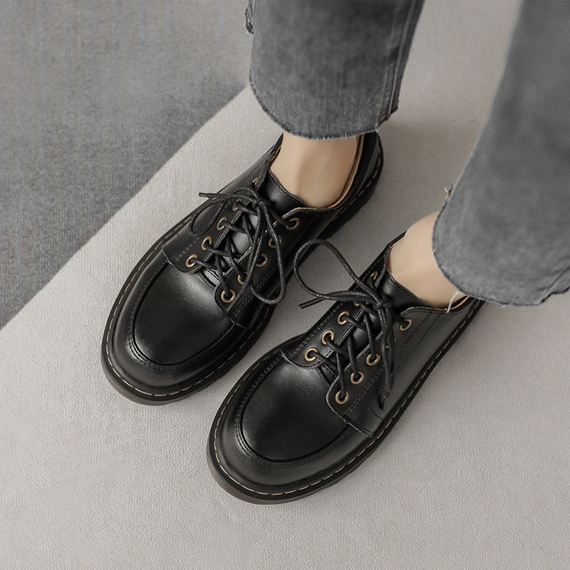 Black Small Leather Shoes Woman Real Leather Bag Shoes 2021 New Inn College Retro round head Students' JK Uniform Shoes