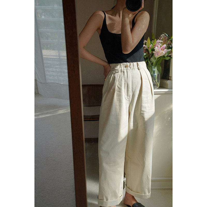 MMCC2023 spring new casual loose all-match elastic waist overalls straight-leg pants women