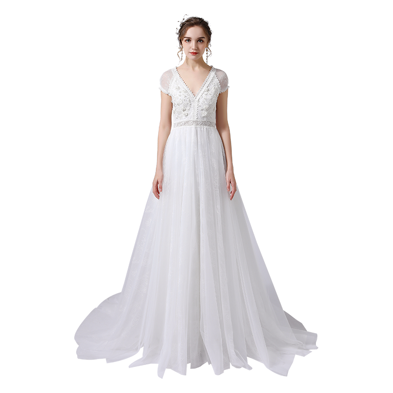Founder Van Sanna Original design New products Real pictures Bubbles Short Sleeves Lace Light Wedding Dress Gown Dress Out of the house Shooting Lawn