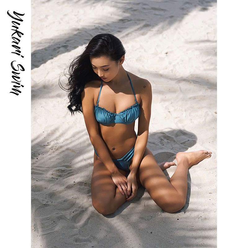 Yukari Swim sexy bikini woman with steel ring gathers for brief three-point two-piece beach swimsuit swimsuit