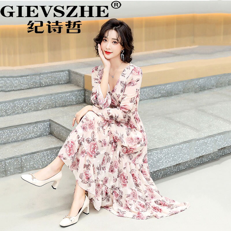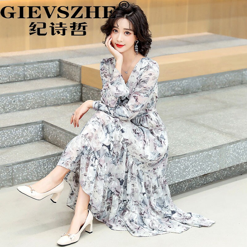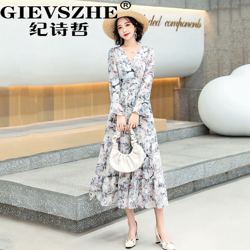 Ji Poetry Philosophy Snowspun Foreign Dress Women's 2021 New Spring Law Style Gentle Wind Shatter temperament Sthin over a long version of the knee