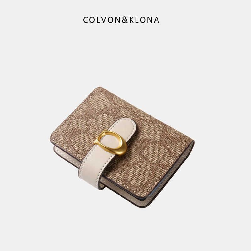 Colvon Klona Driver's license clip card bag female small ultra-thin high-grade buckle multi-card anti-degaussing coin purse
