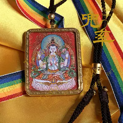 To make up the difference, small thangka, thangka, Tibet, Qinghai Regong mineral pigment, yellow Wealth God