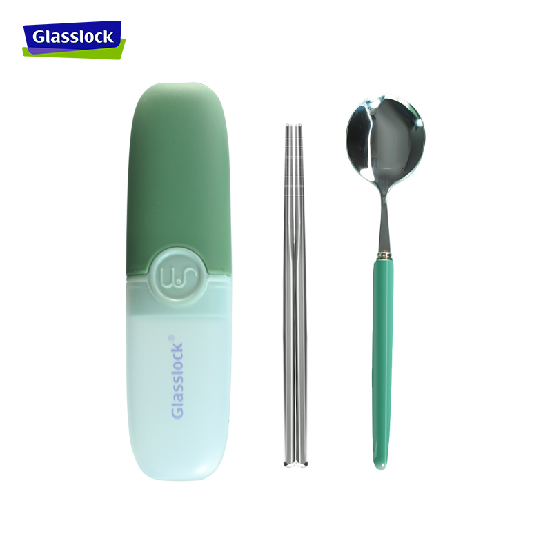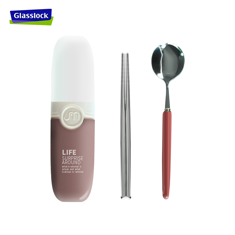 glasslock304 stainless steel tableware chopsticks spoon 2 pieces set with box ceramic long handle metal spoon chopsticks student