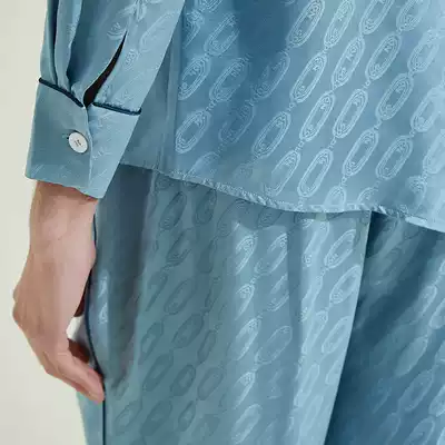 Jinlilai 100%mulberry silk home clothes pajamas set Spring and Autumn silk two-piece set placket printed long-sleeved trousers