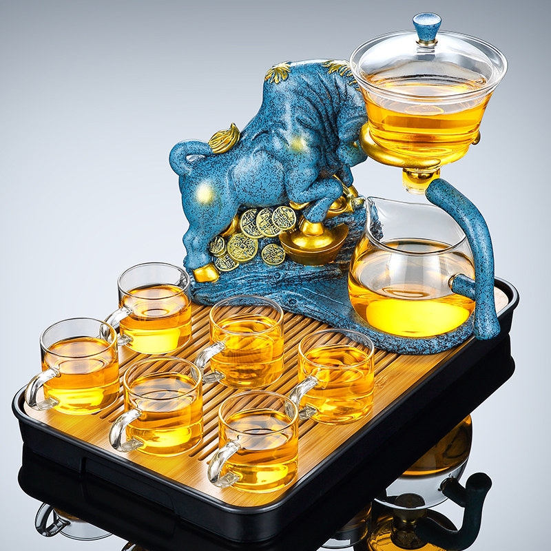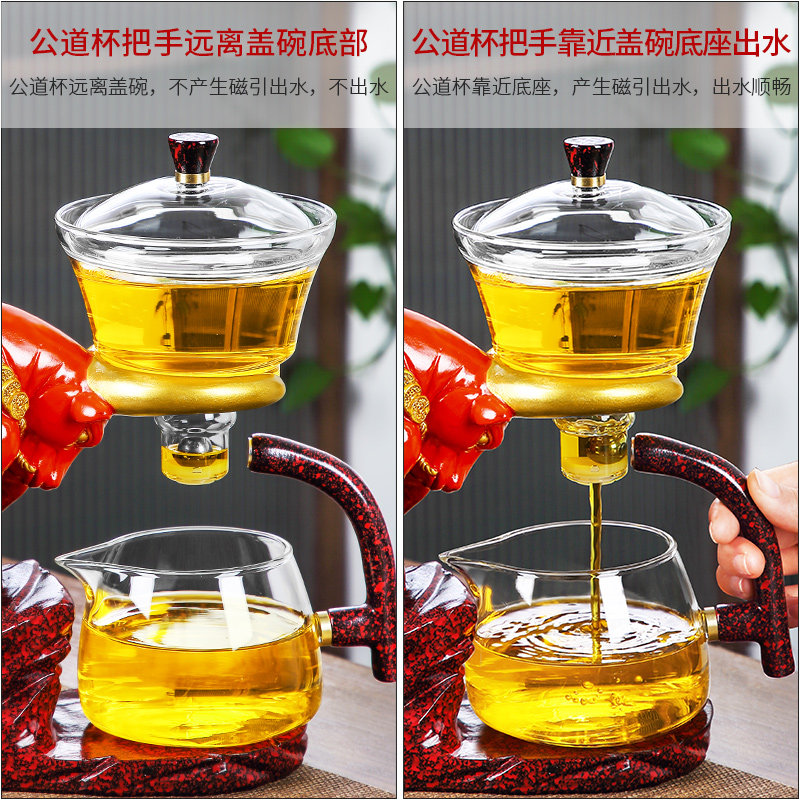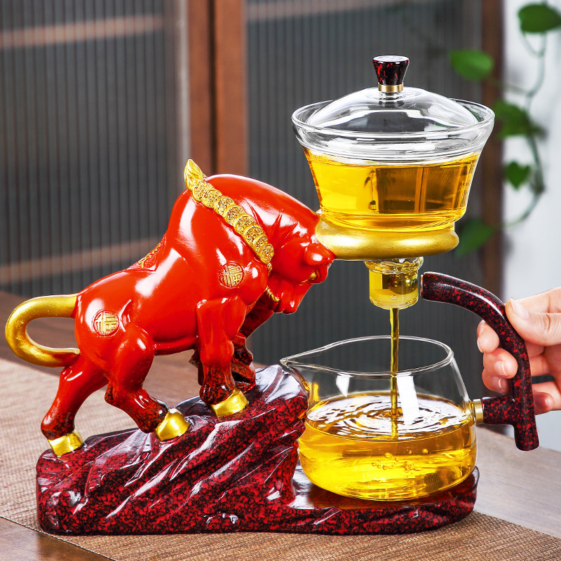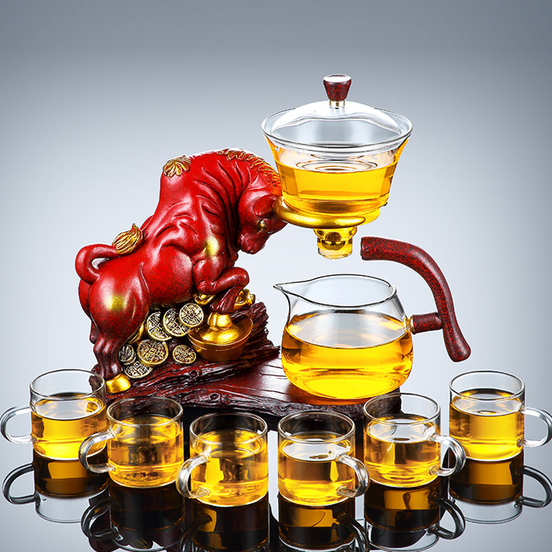 Year of the Ox Creative glass automatic tea Set Household lazy Teapot Teacup Red magnetic bubble tea drink tea