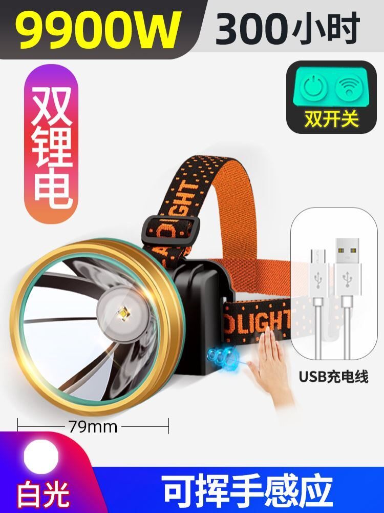 Headlight strong light three electric rechargeable head-mounted xenon led torch lighting outdoor miner's lamp lithium battery super bright