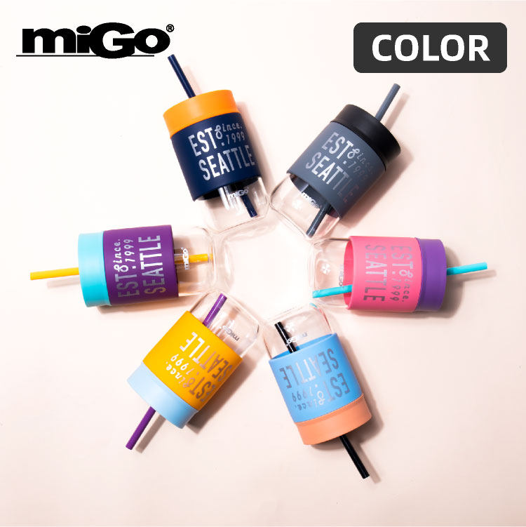migo high-value straw glass heat-resistant large-capacity Transparent Coffee Cup children cute ins Wind advanced sense
