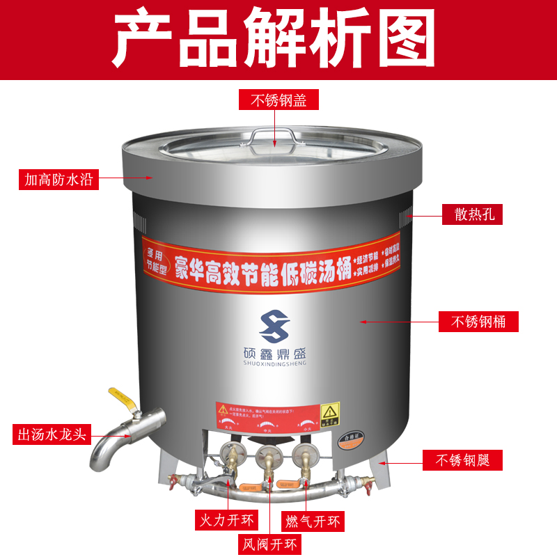 Commercial stainless steel halogen pot boiled toilet thickening large capacity energy-saving gas toilet boiled beef and lamb soup bucket