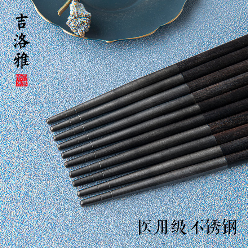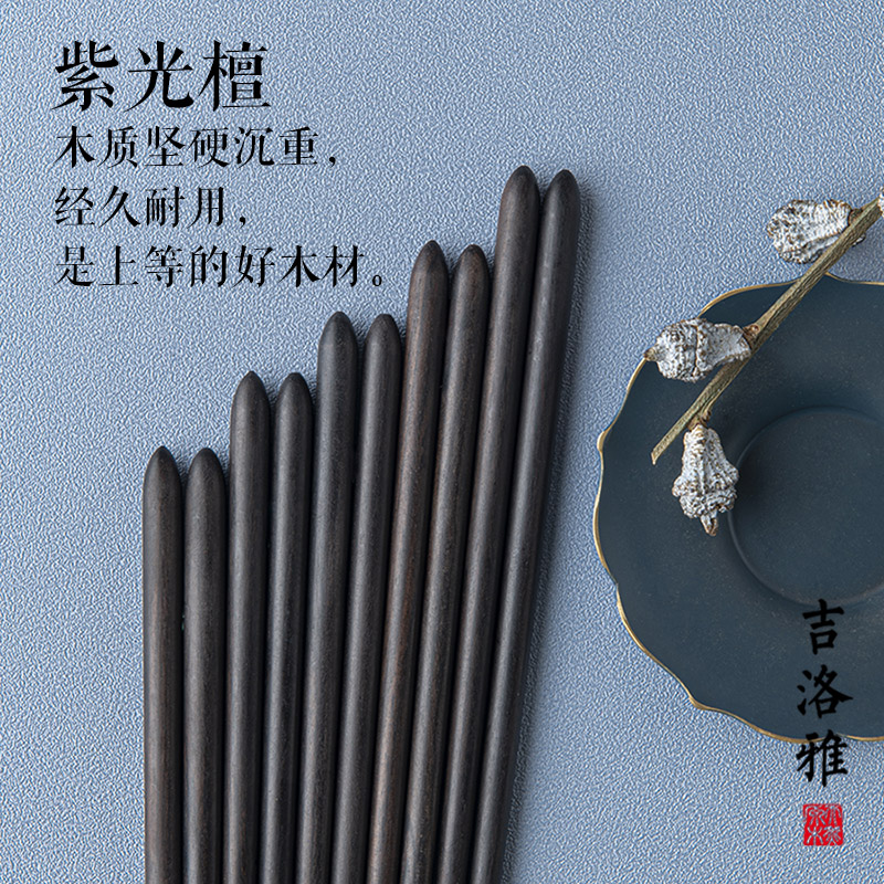 Jiluoya natural purple sandalwood ebony chopsticks ebony household high-end portable plain Zen chopsticks trendy Japanese chopsticks