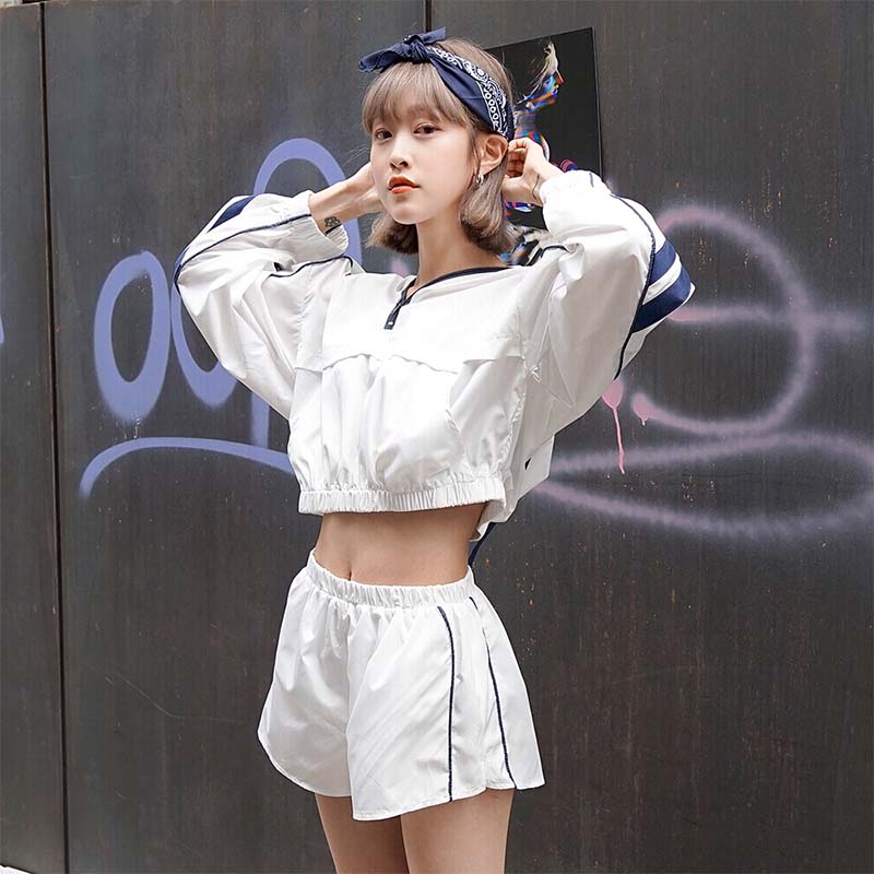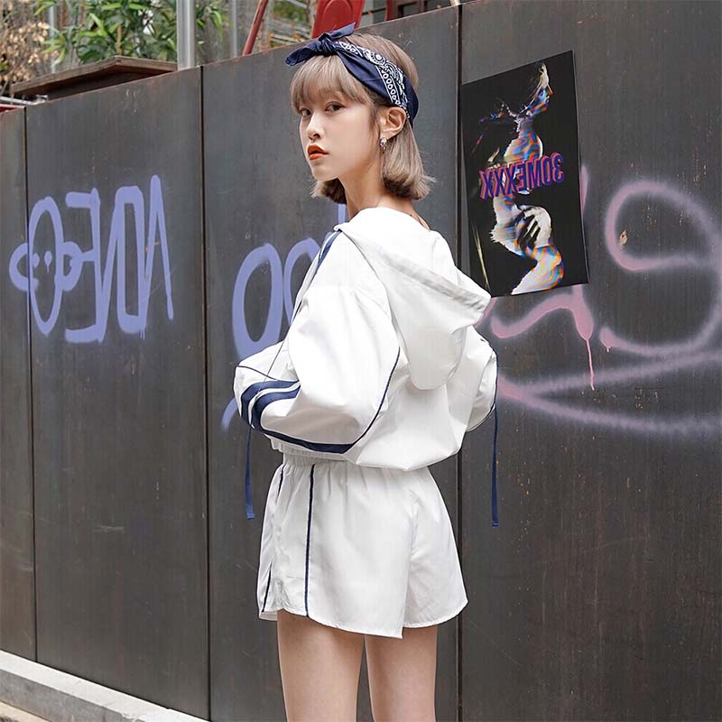 Small white hooded sunscreen sweater shorts two-piece suit casual sportswear 2022 spring and summer new women