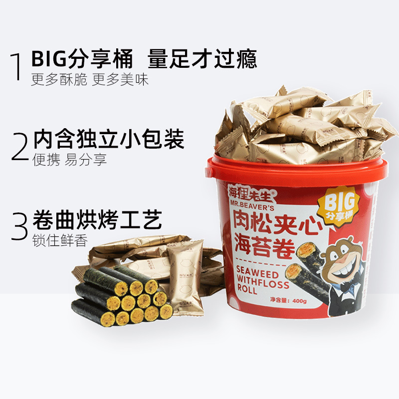 Mr. Beaver Nori Meat Roll Children Pregnant Women Snack 400g *1 Barrel Seaweed Sandwich Crisp Net Red Hot Recommendation