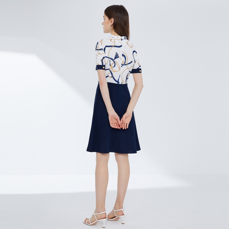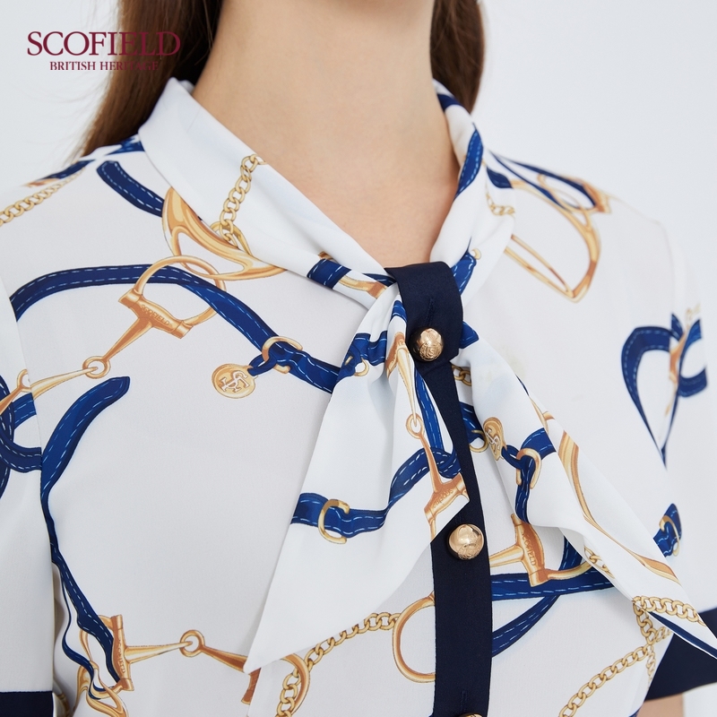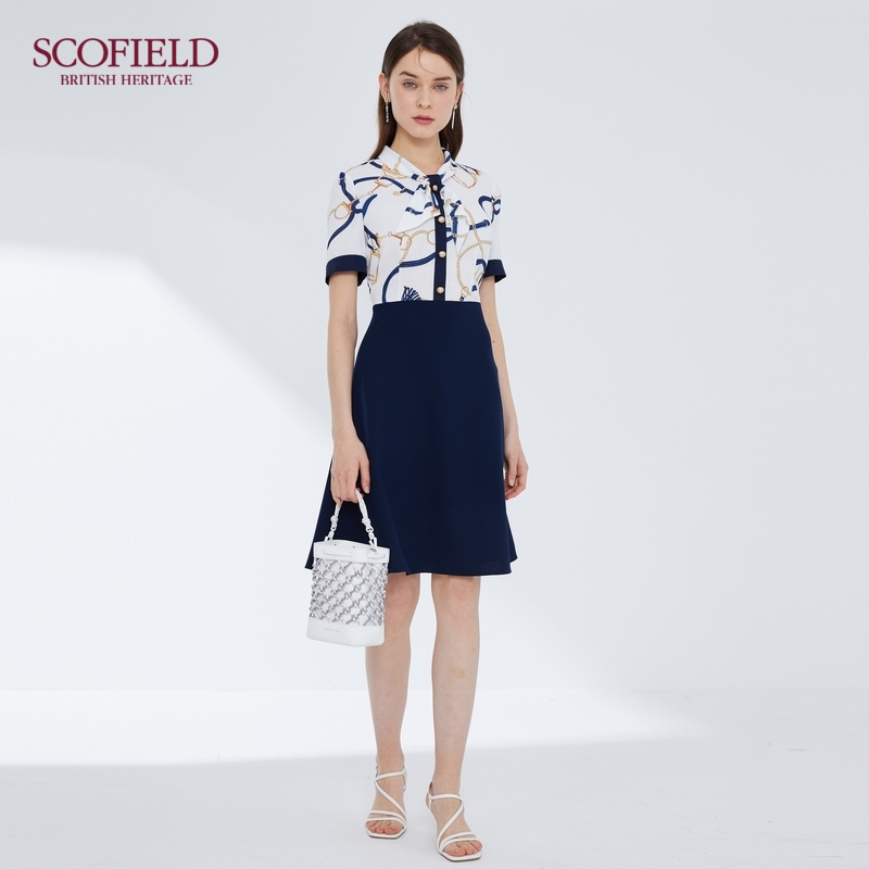 SCOFIELD Women's 21 Spring new product Chain print waist X-shaped midi dress SFOWB2411Q