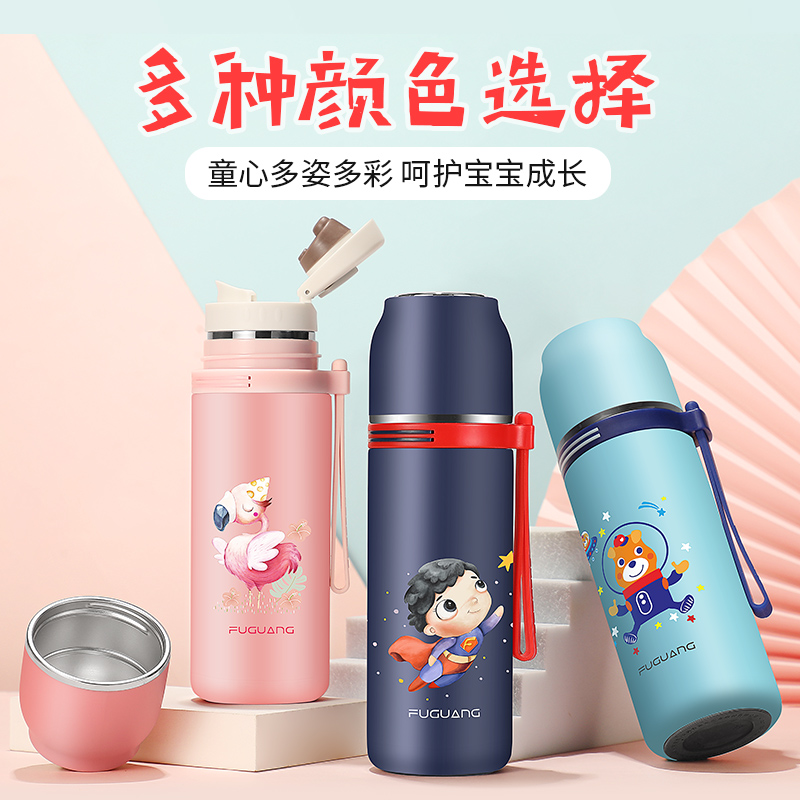 Rich Light Children Insulation Cups Elementary School Students Men's Portable Straight Drinks 316 Cups Cartoon Cute Kid Female Lettering Water Cup