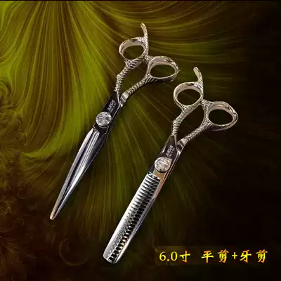 Jungle leopard jazz professional hair straightening scissors flat cutting teeth seamless thin cutting hair stylist special set