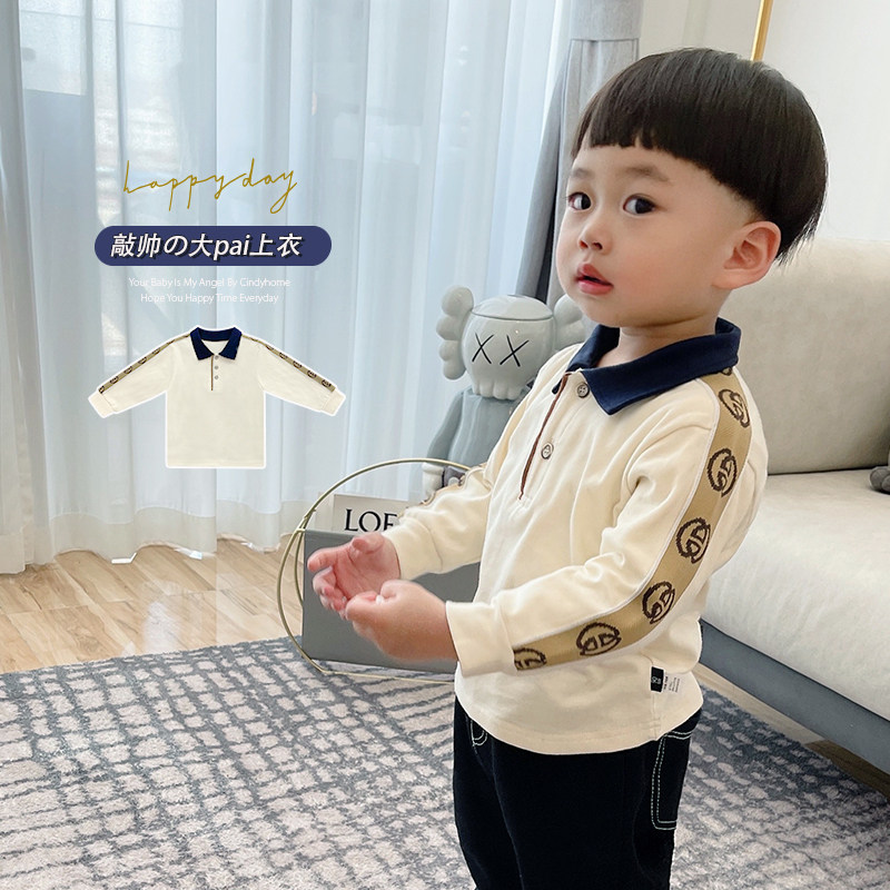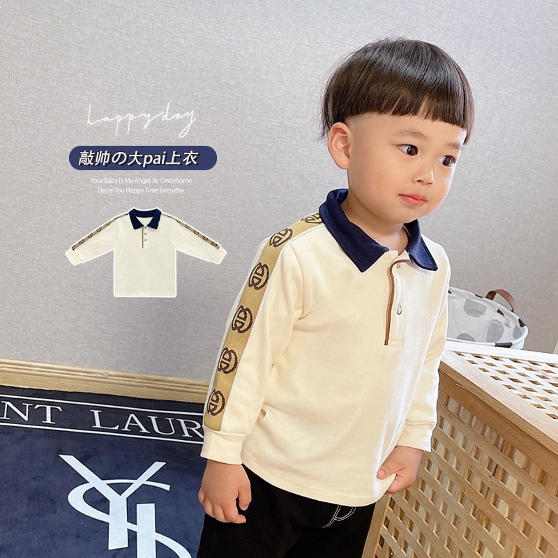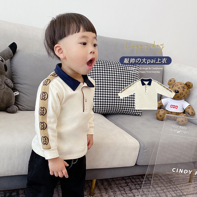 Spring and autumn thin cotton boy printed top lapel polo shirt net red fried street children's clothes long-sleeved T-shirt