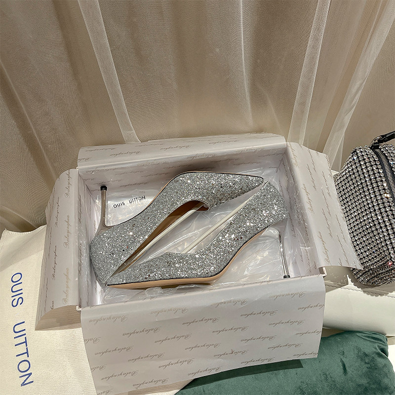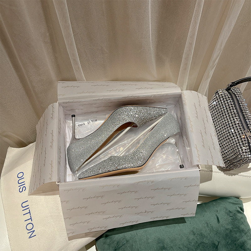 Wedding Shoes Women 2022 New Bridal Shoes Show and Wedding Dress Two Wear Without Tired Feet Crystal Shoe Bridesmaid Fine Heel High Heels
