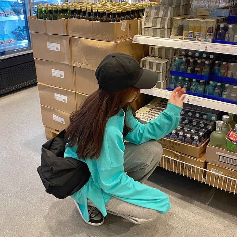 HHYEE sweater women's 2021 new loose tide round neck Western style age-reducing pullover lazy style thin blue top