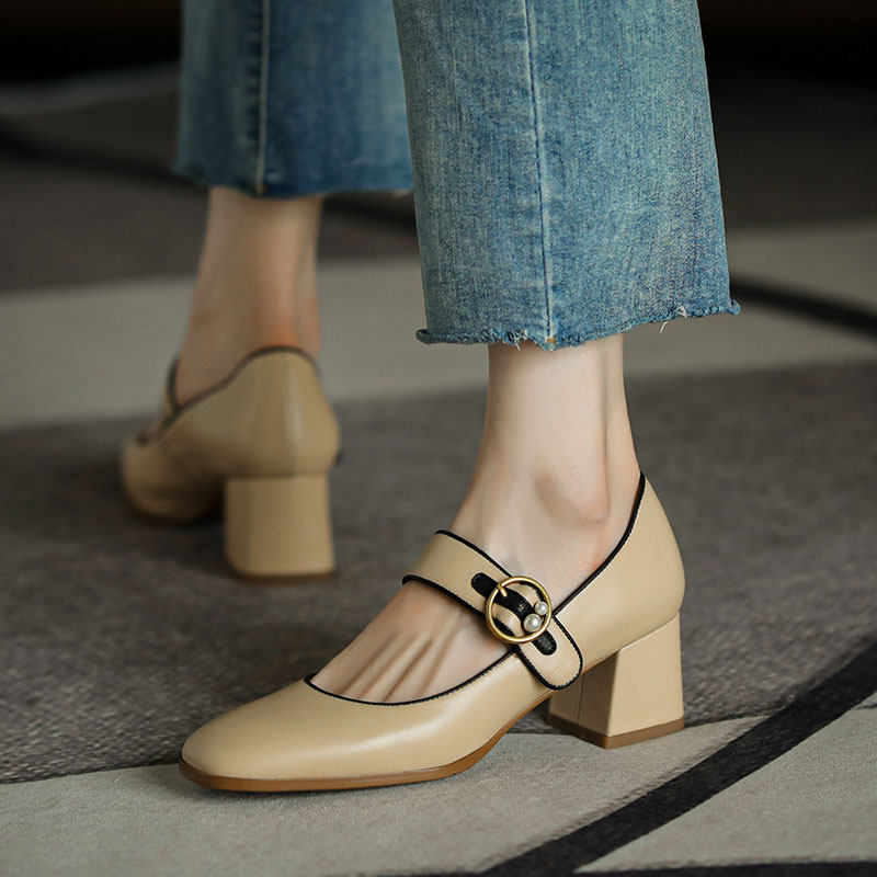 GAIAIER retro-word cingulum Mary Jane shoes ~ 2021 new temperament genuine leather wine red single shoes women's shoes