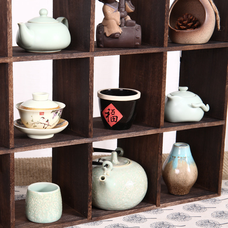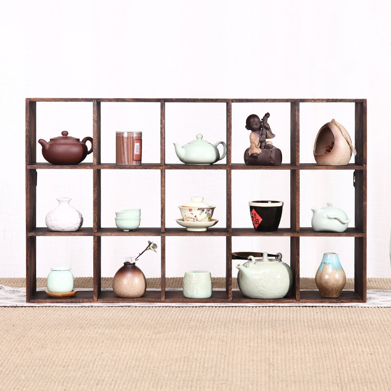 Solid Wood Tea Cup Shelf Bogu Shelf Wall-mounted Wall Multilayer Shelving Shelf Teapot shelf Rack Pendulum shelf Rack Shelf