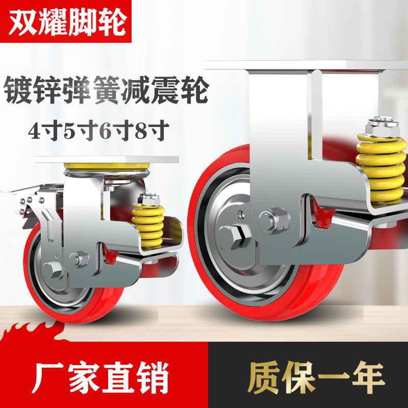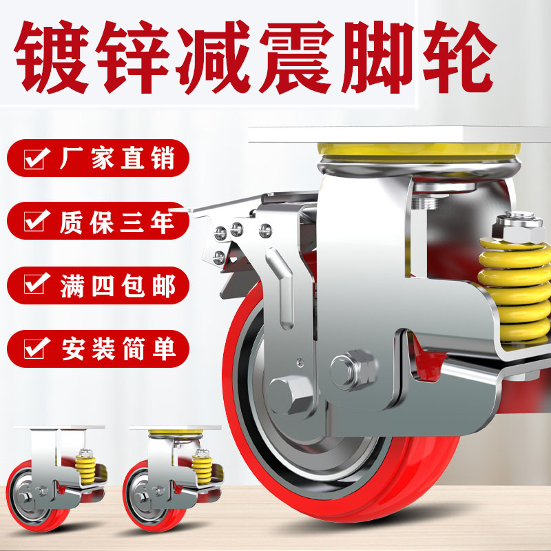 Shock absorbing wheel universal wheels Heavy 4 inches 5 inch 6 inch Scooter Small Pushcart Wheels Polyurethane PU Spring Damping Castors