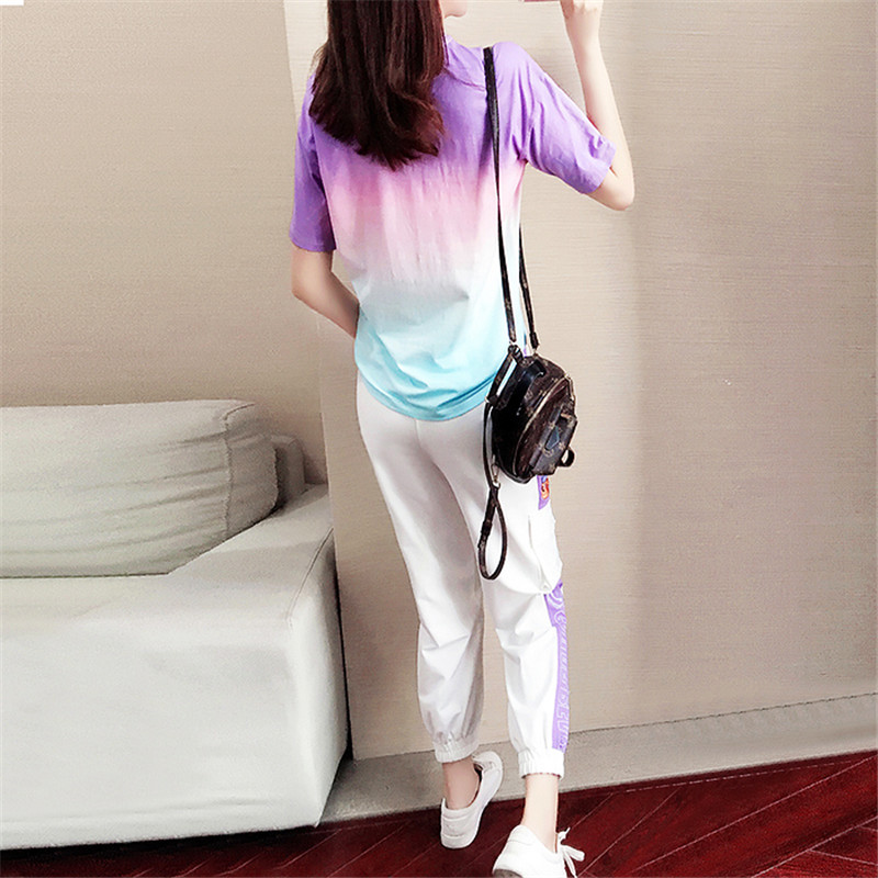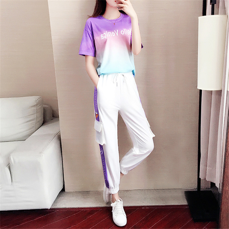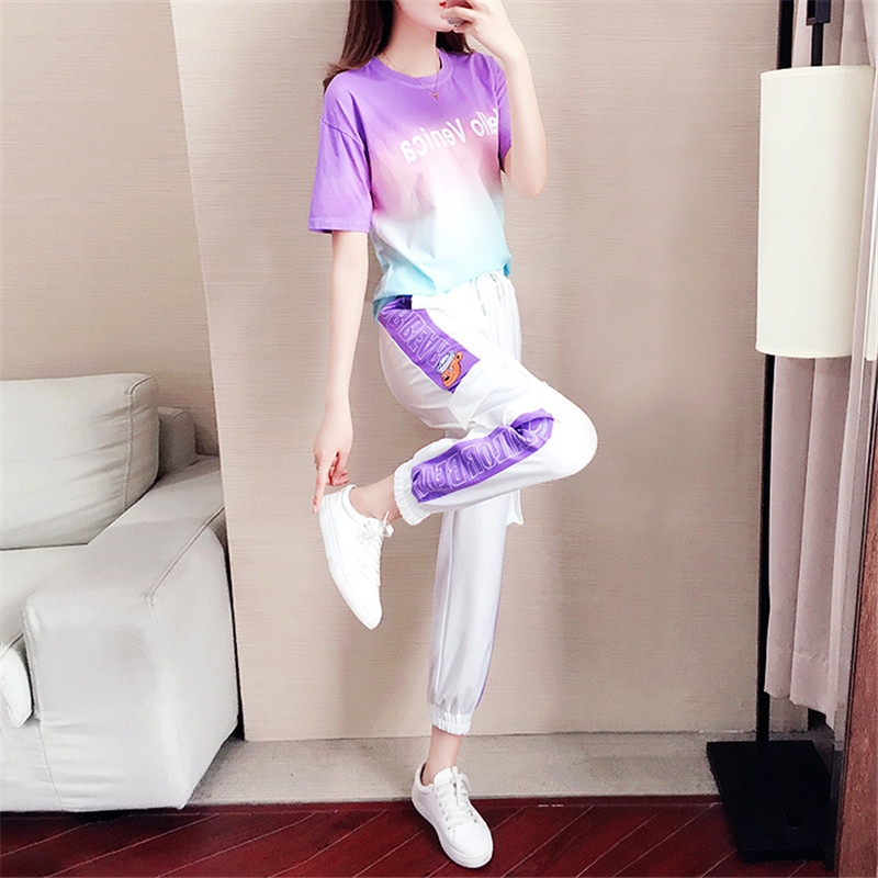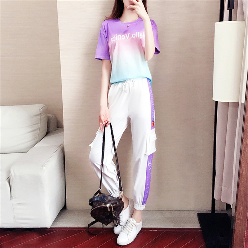 Hong Kong 2022 Summer New Leisure Sports Suit Women Han Version Purple Foreign Fashion T-shirt Short Sleeve Two Pieces
