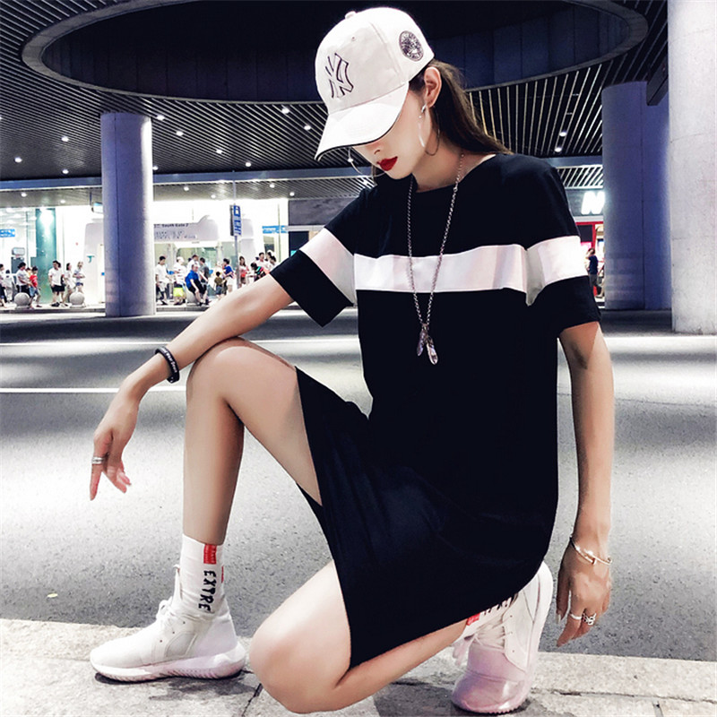 Hong Kong 2021 summer new mid-length short-sleeved T-shirt women's sports casual dress loose and thin temperament
