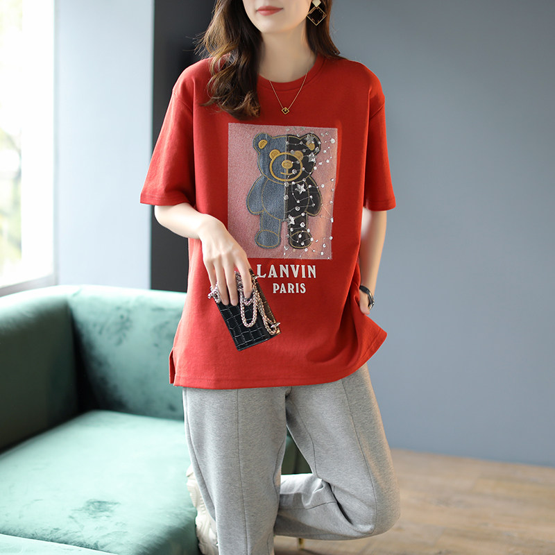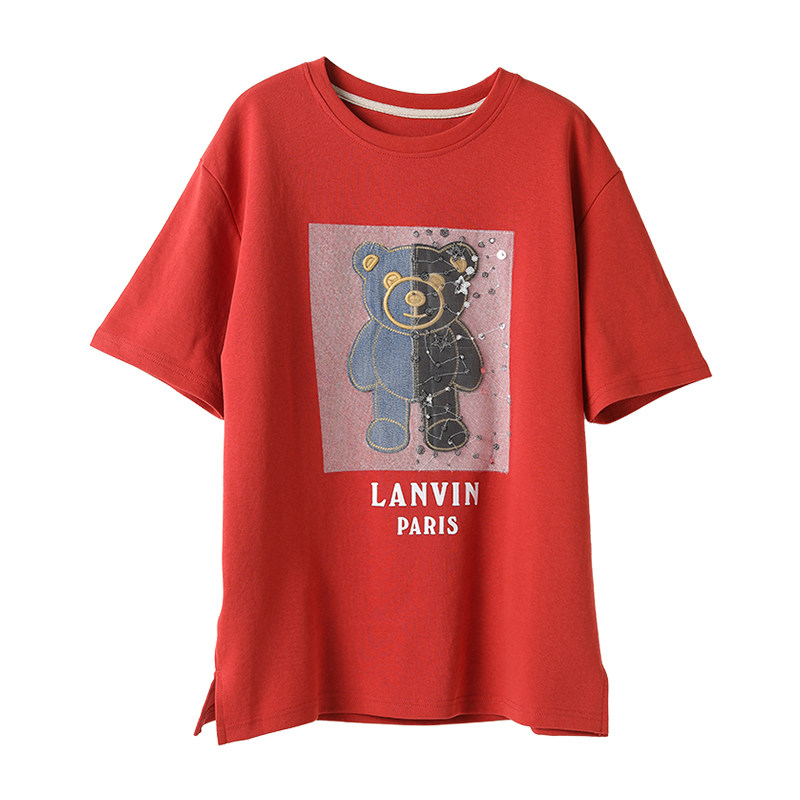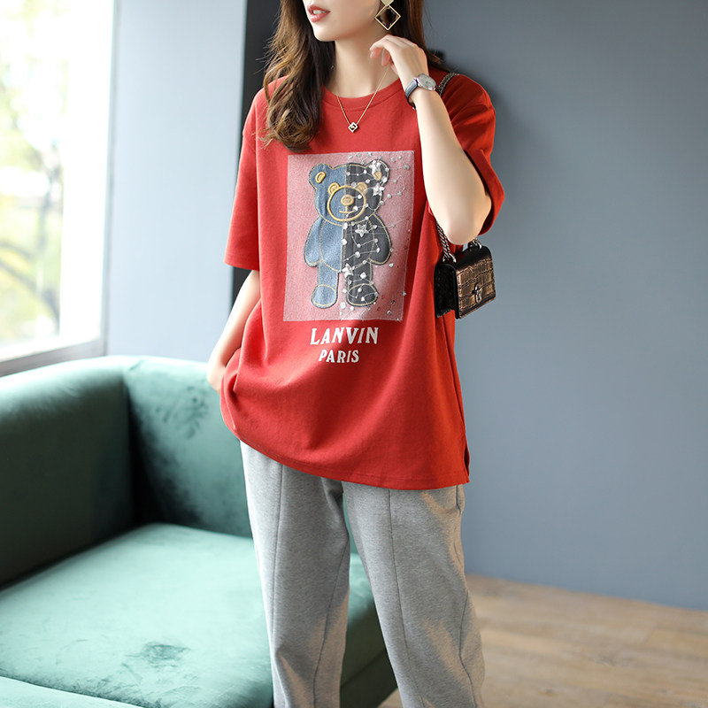 Bao Shi Li round collar embroidered mesh splicing short T-shirt female spring 2021 new Korean edition loose temperament blouse