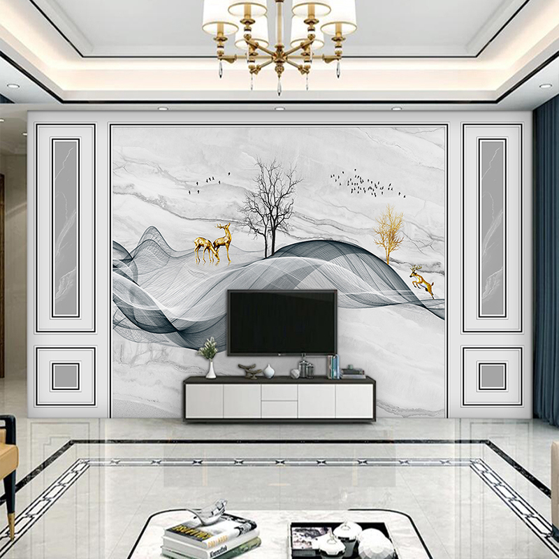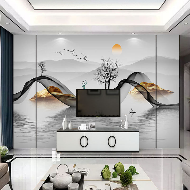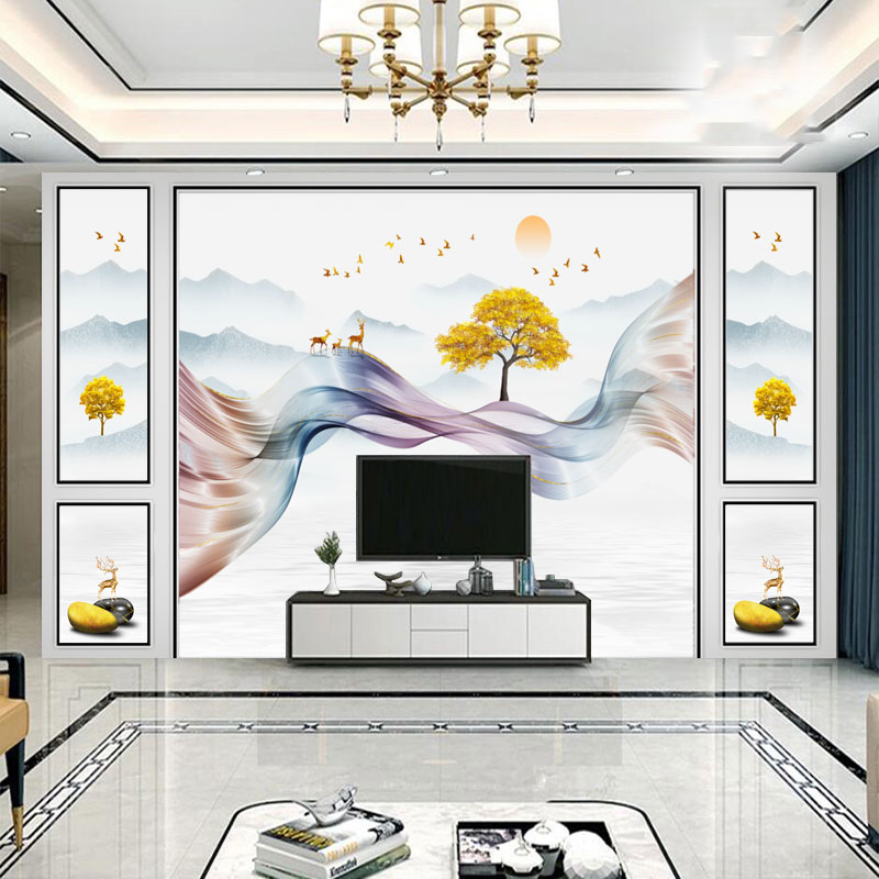 Abstract modern living room bamboo and wood fiber integrated TV background wall sofa background decorative gusset quick-installed siding