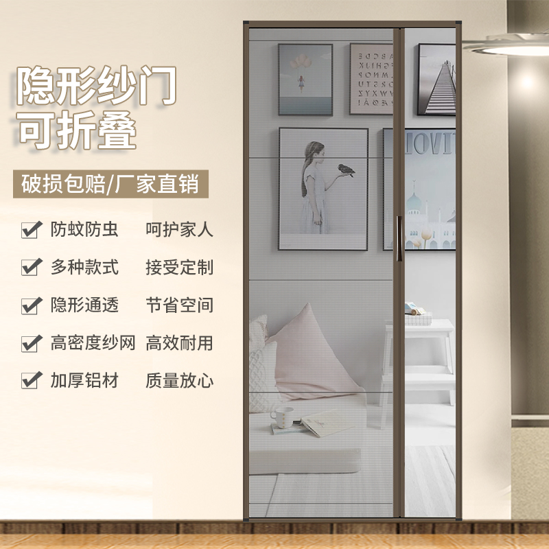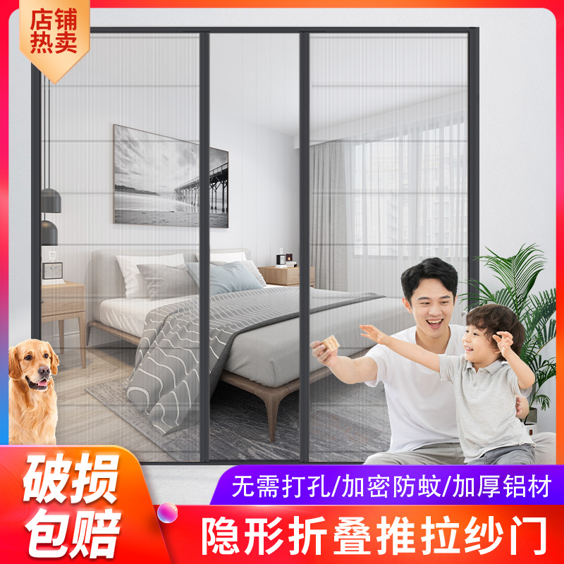 Invisible folding sliding screen door anti-mosquito door curtain sliding type breathable telescopic trackless screen aluminum alloy sand door customization