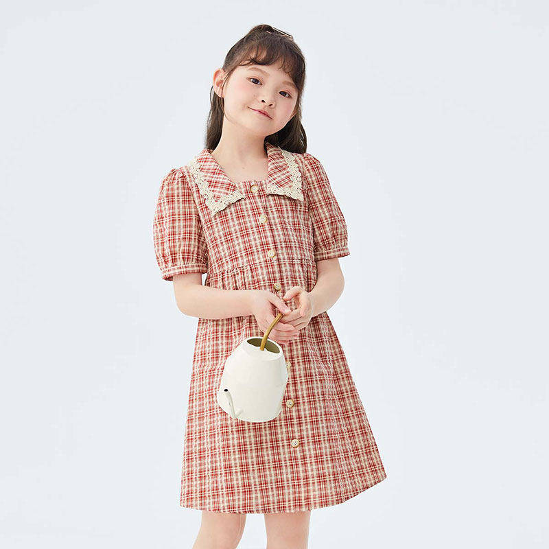 Inman red children dress Children's dress Girls foreign dress Female Dress Plaid School Dress 2022 Summer New