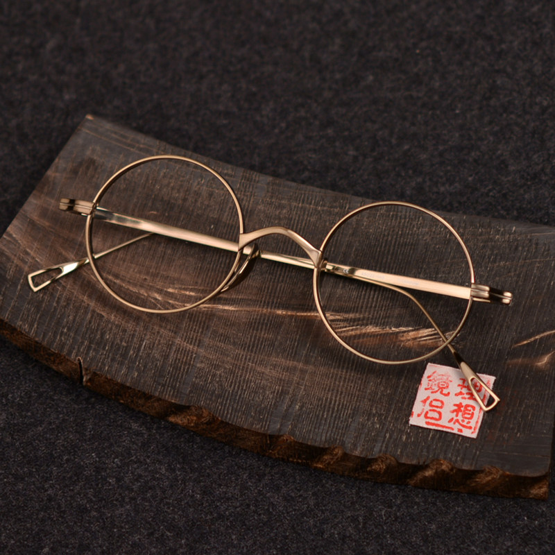 Japanese handmade pure titanium ten thousand years glasses frame myopia retro ultra light high myopia small round glasses turtle Kmn99
