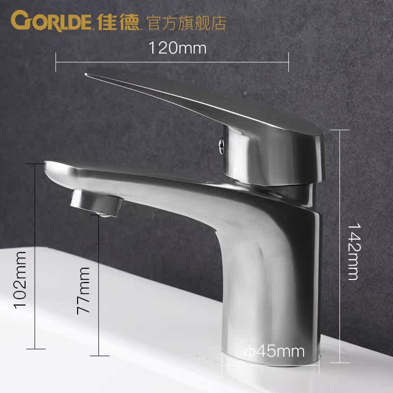 gorlde SUS304 stainless steel pelvis face basin makeup room bathroom cold and hot tap