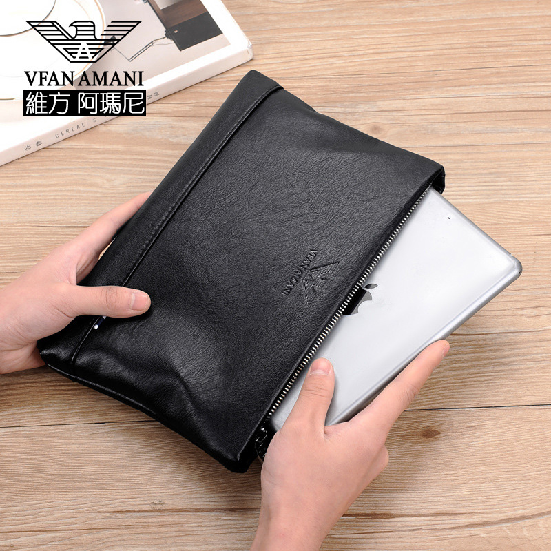 AMN Brand Handbag Men Leather Pullet Wallet Wallet Buffalo Envelope Purpose Business Leisure Handbag