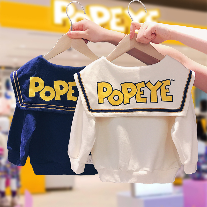 Vigorous sailor POPEYE baby navy collar jersey child 2022 spring autumn season new male and female child jacket hooded sweatshirt