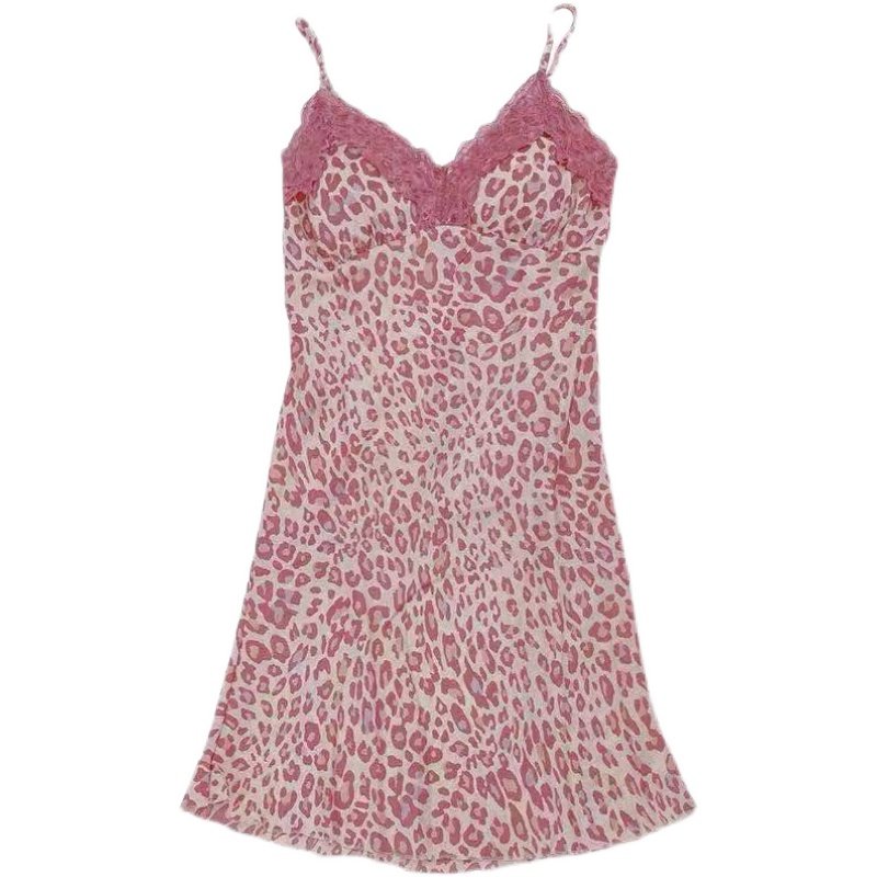 Private room BAO WEN cute spring and summer lace sling milk silk nightdress home service sling pajamas with chest pad female